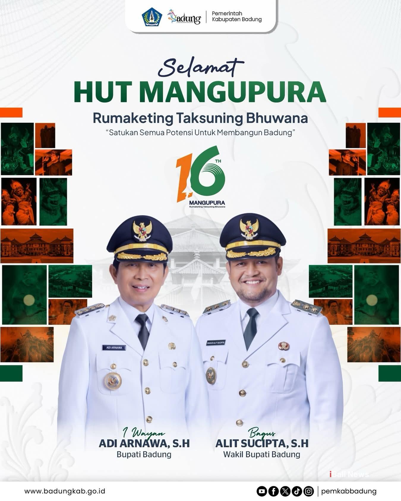 MANGUPURA, iBaliNews.Com – Bupati Badung I Wayan Adi Arnawa didampingi Wakil Bupati Badung Bagus Alit…