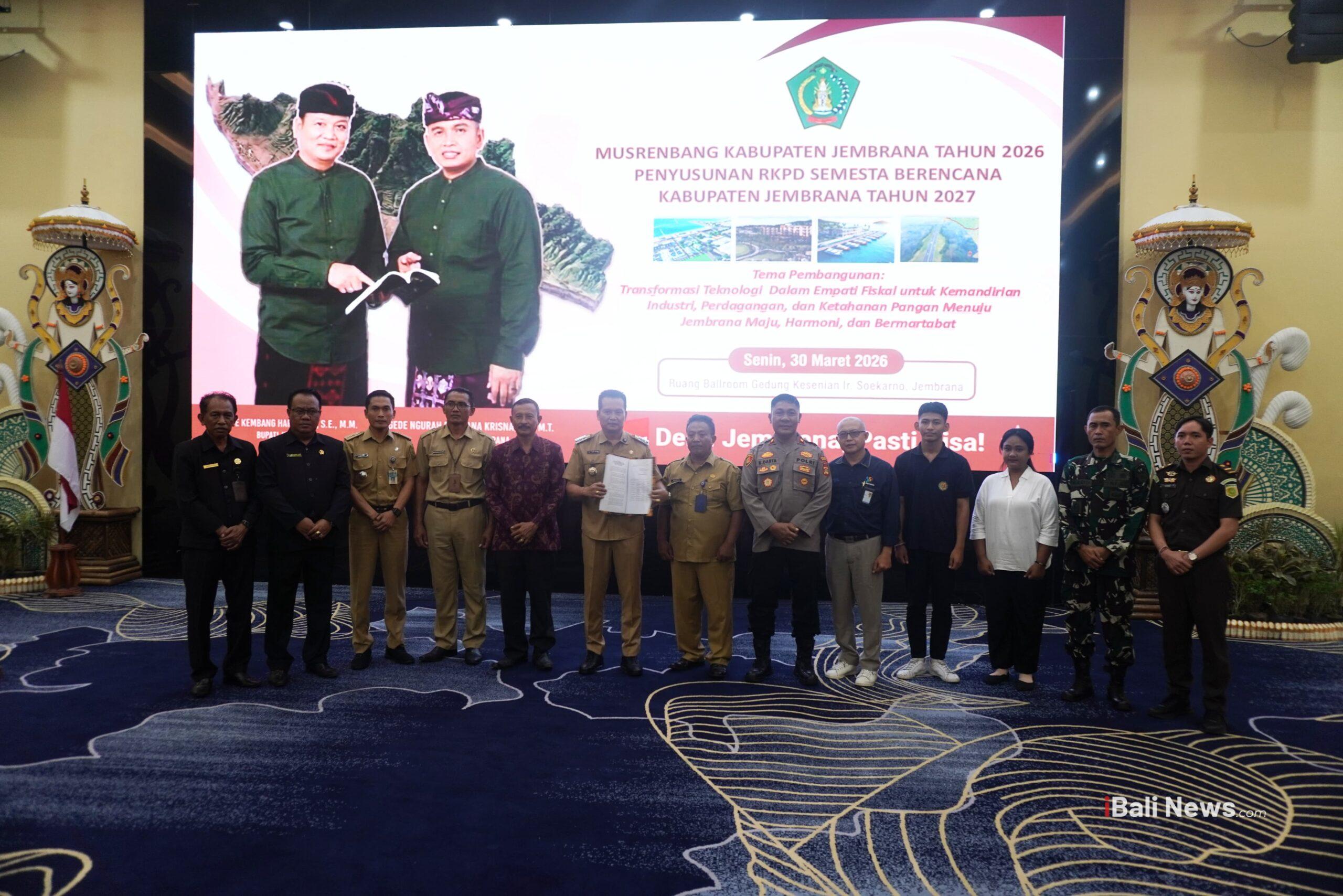 JEMBRANA, iBaliNews.Com – Pemerintah Kabupaten Jembrana menyelenggarakan Musyawarah Perencanaan Pembangunan (Musrenbang) Rencana Kerja Pemerintah Daerah (RKPD) Tahun 2027 di Gedung Kesenian Bung Karno, Senin (30/3). Acara ini menjadi momentum krusial dalam menyelaraskan aspirasi masyarakat dengan arah pembangunan strategis kabupaten.