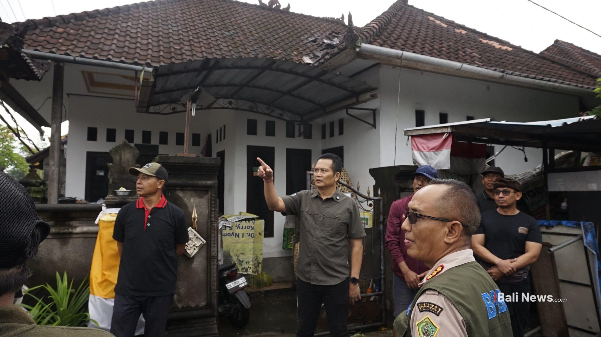 JEMBRANA, iBaliNews.Com – Bupati Jembrana, I Made Kembang Hartawan, meninjau langsung sejumlah titik lokasi yang terdampak bencana angin puting beliung pada Rabu (21/1). Kejadian yang terjadi pada dini hari tersebut mengakibatkan puluhan keluarga mengalami kerusakan bangunan, terutama pada bagian atap rumah.
