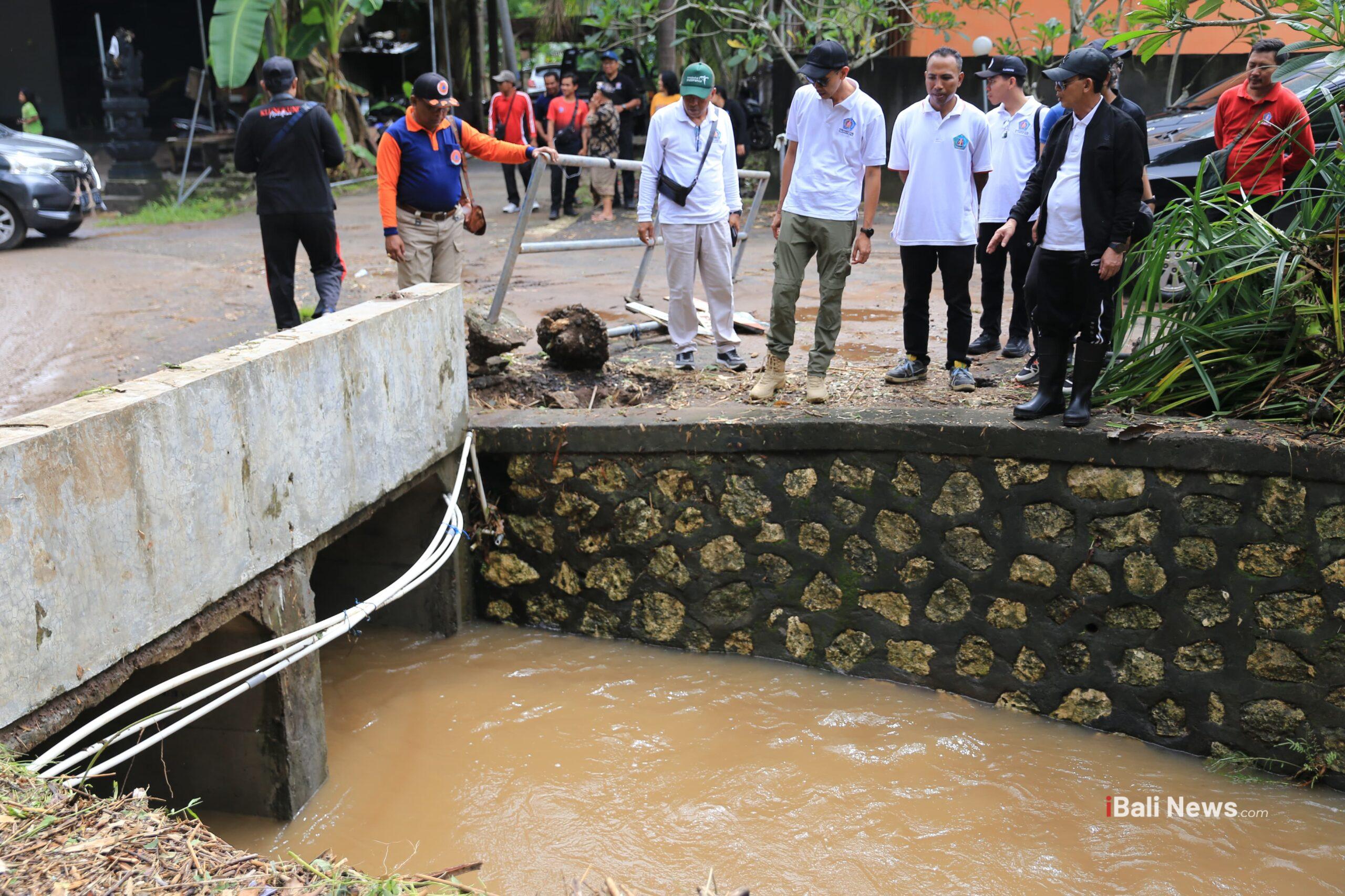 Sebelumnya dihari yang sama, rombongan juga melakukan peninjauan ke Desa Batununggul, tepatnya di ruas jalan depan Bank BPD Bali. Di lokasi tersebut, Bupati Satria melihat langsung kondisi saluran Sungai Mentigi yang mengalami pendangkalan dan dipenuhi sampah. Kondisi ini menyebabkan terjadinya banjir setinggi kurang lebih satu meter, meskipun hujan yang turun pada Rabu (21/1) pagi tergolong berintensitas sedang. Perbekel Desa Batununggul, I Ketut Sulatra, menjelaskan banjir terjadi akibat pendangkalan sungai serta tumpukan sampah yang terbawa arus. Kondisi serupa juga ditemukan pada sejumlah aliran sungai di sekitar Desa Ped, yang mengalami pendangkalan dan penyempitan akibat pembangunan liar.