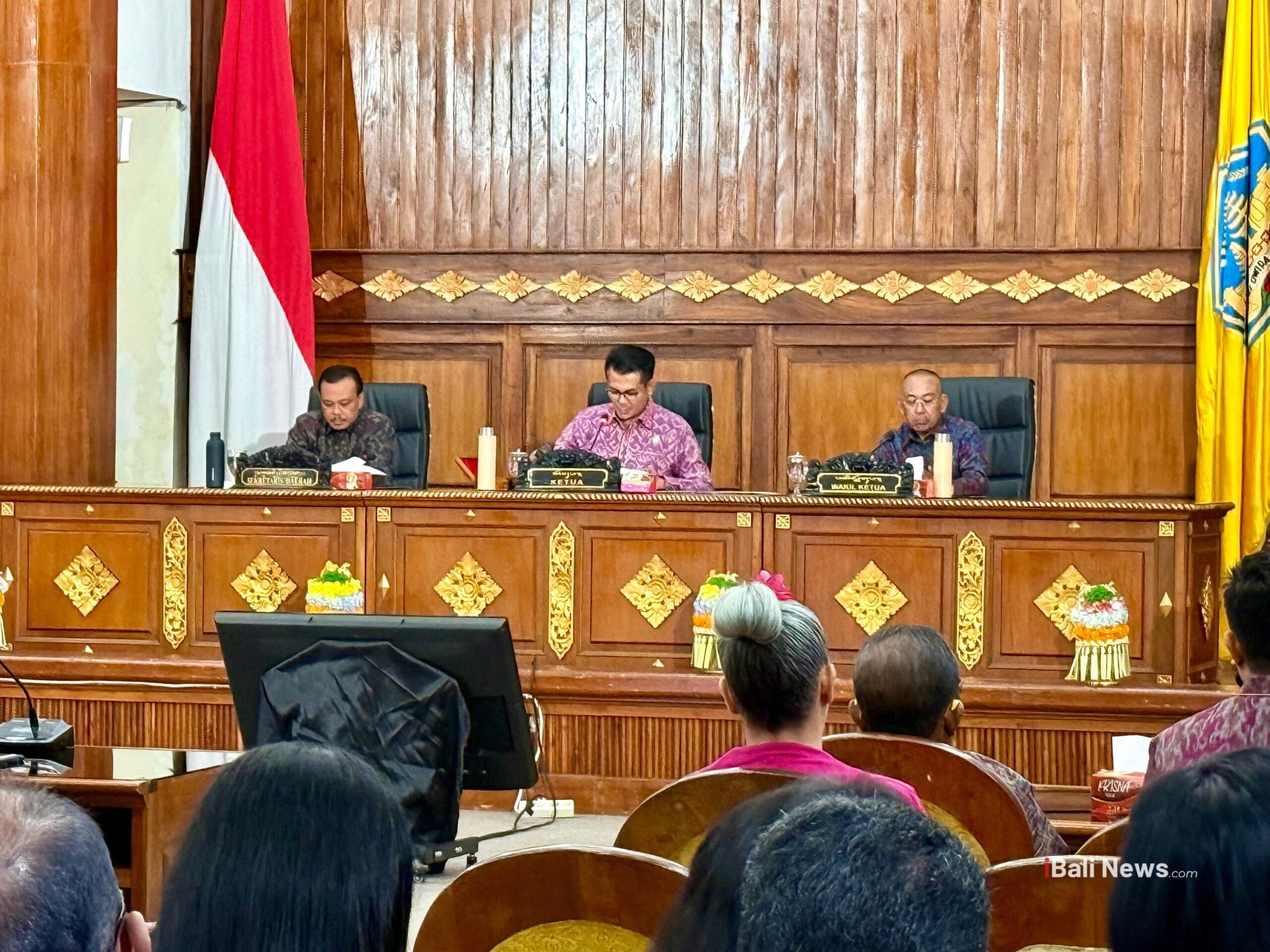 Rapat paripurna tersebut dihadiri Sekretaris Daerah Provinsi Bali, Dewa Made Indra, yang mewakili Gubernur Bali, Wayan Koster. Agenda rapat membahas pandangan umum fraksi-fraksi DPRD terhadap dua rancangan peraturan daerah (Raperda) strategis, yakni Raperda Pengendalian Toko Modern Berjejaring serta Raperda Pengendalian Alih Fungsi Lahan Produktif dan Larangan Alih Kepemilikan Lahan Secara Nominee.
