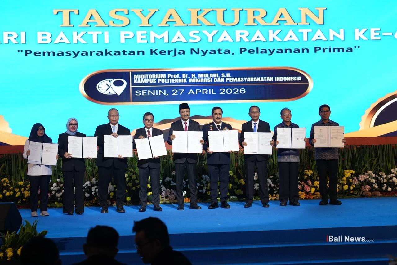 Bupati Badung I Wayan Adi Arnawa bersama Gubernur Bali Wayan Koster hadir langsung dalam penandatanganan yang berlangsung pada rangkaian Puncak Hari Bhakti Pemasyarakatan Ke-62 Tahun 2026. Kegiatan ini mengusung tema “Pemasyarakatan: Kerja Nyata, Pelayanan Prima” dan digelar di Kampus Poltek IMPAS Tangerang, Banten, Senin (27/04/2026). Acara tersebut juga dihadiri oleh Menteri Koordinator Bidang Hukum, HAM, Imigrasi, dan Pemasyarakatan.