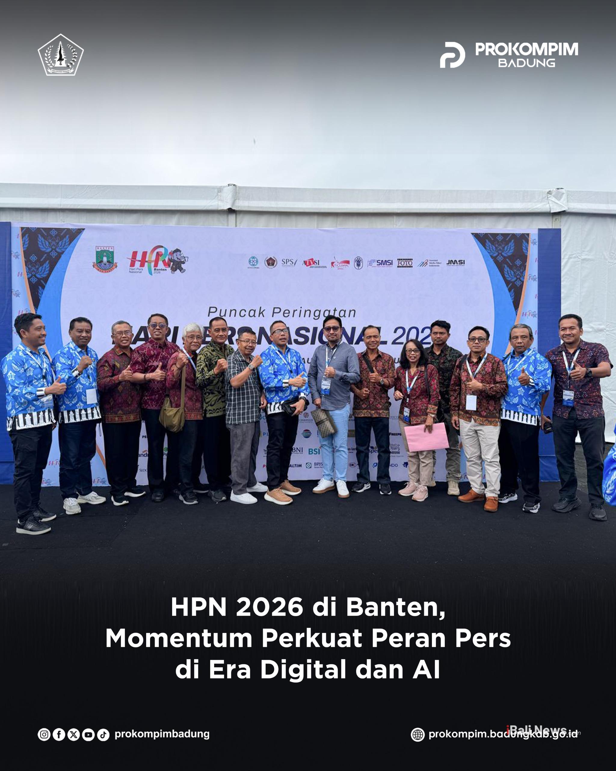 Kepala Bagian Protokol dan Komunikasi Pimpinan (Kabag Prokompim) Setda Badung, Made Suardita, mewakili Bupati Badung bersama Persatuan Wartawan Indonesia (PWI) Bali dan Serikat Media Siber Indonesia (SMSI) Badung menghadiri puncak peringatan HPN 2026 yang berlangsung di Kota Serang, Senin (9/2/2026).
