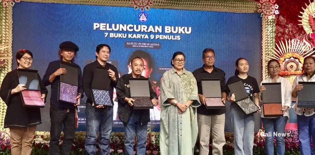 DENPASAR, iBaliNews.Com – Ketua TP PKK Provinsi Bali, Ny. Putri Suastini Koster yang juga dikenal aktif berkiprah di dunia sastra dan kesenian memfasilitasi peluncuran tujuh buku karya sembilan penulis di Gedung Kertha Sabha, Sabtu (10/5/2025).