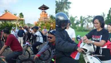 Semarak HUT RI Ke -80, Bakesbangpol dan KPU Badung Gelar Gowes dan Pembagian Bendera Merah Putih