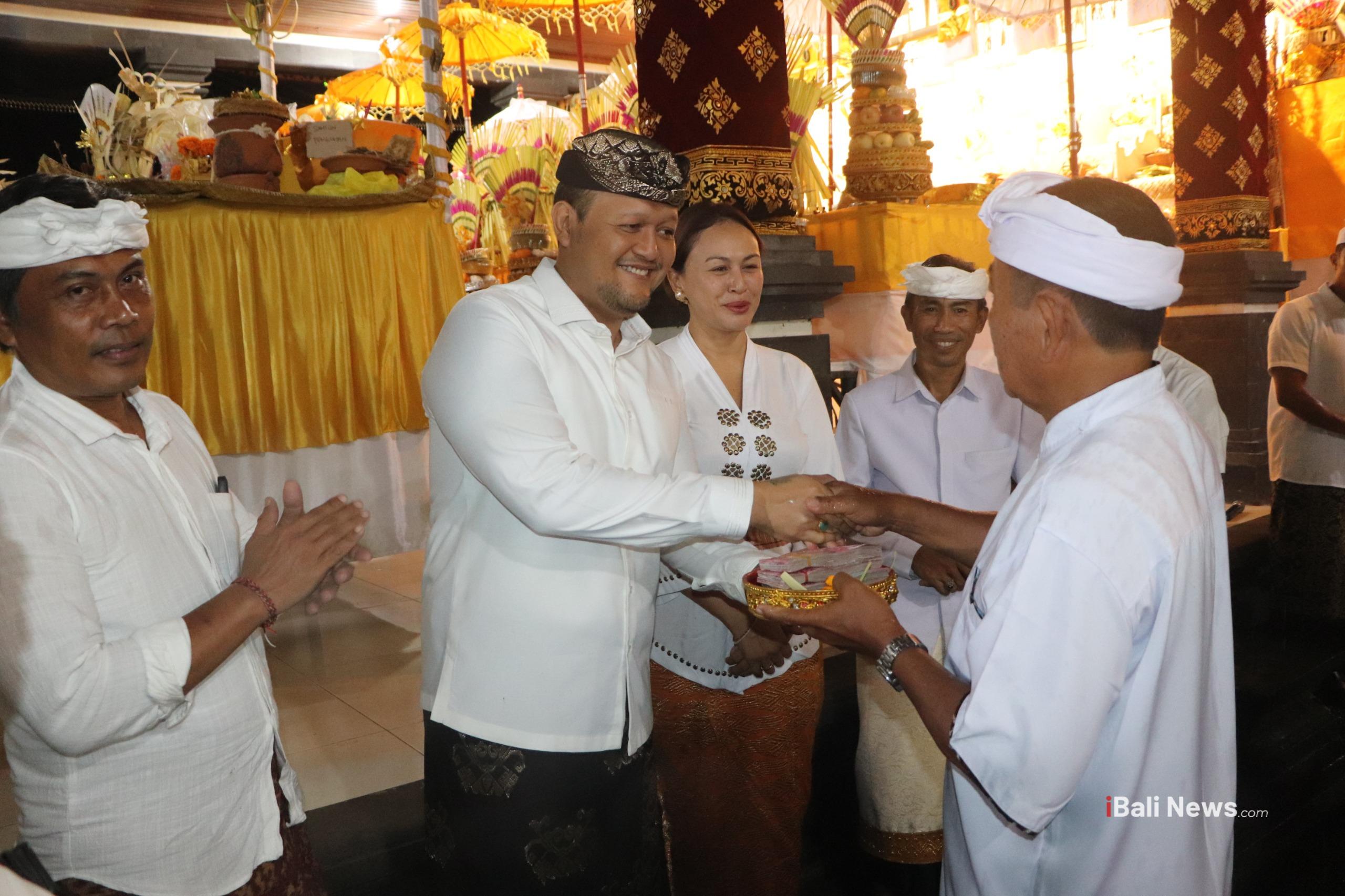 Sebagai bentuk dukungan terhadap pelaksanaan Yadnya, Wabup Bagus Alit Sucipta menyerahkan bantuan dana secara pribadi sebesar Rp 30 juta yang diterima langsung Ketua Panitia Karya, I Wayan Sunarta.